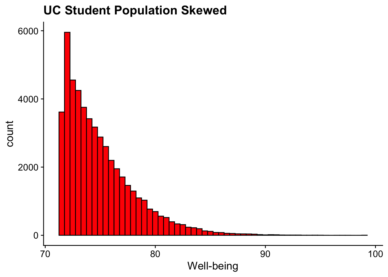 labs(title = "UC Student Population Skewed", x = "Well-being") + theme_cowplot()