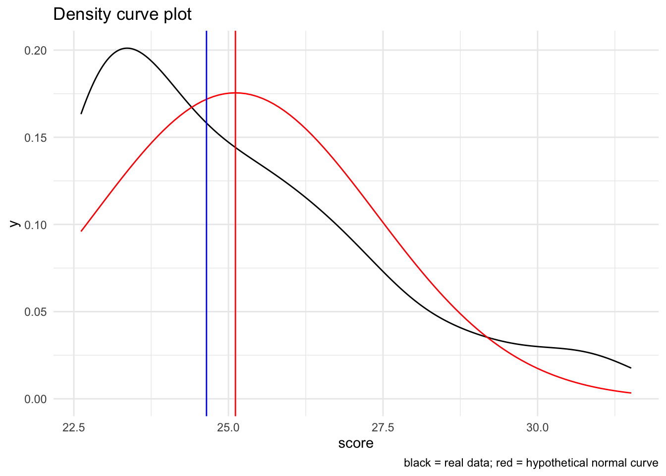 ) geom_vline(xintercept = mean(tjd_hs_data$student_scores), color="red") +