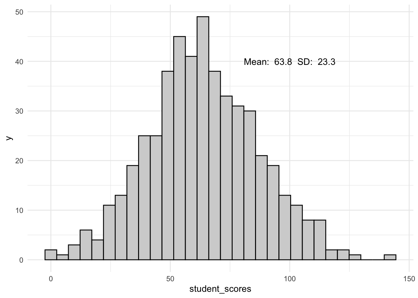<- rnorm(n = 500, mean = 63, sd = 24) %>% round() # scores