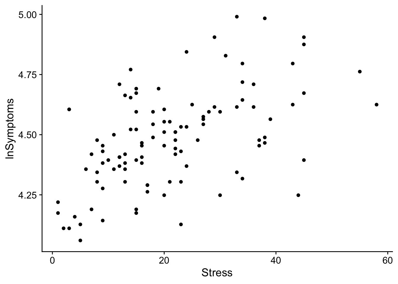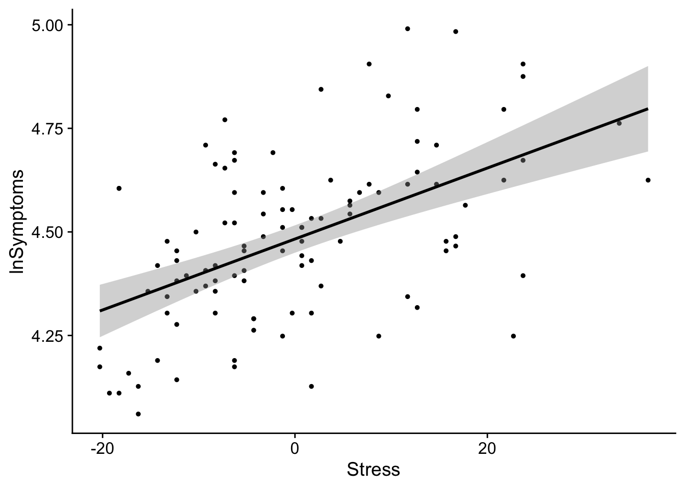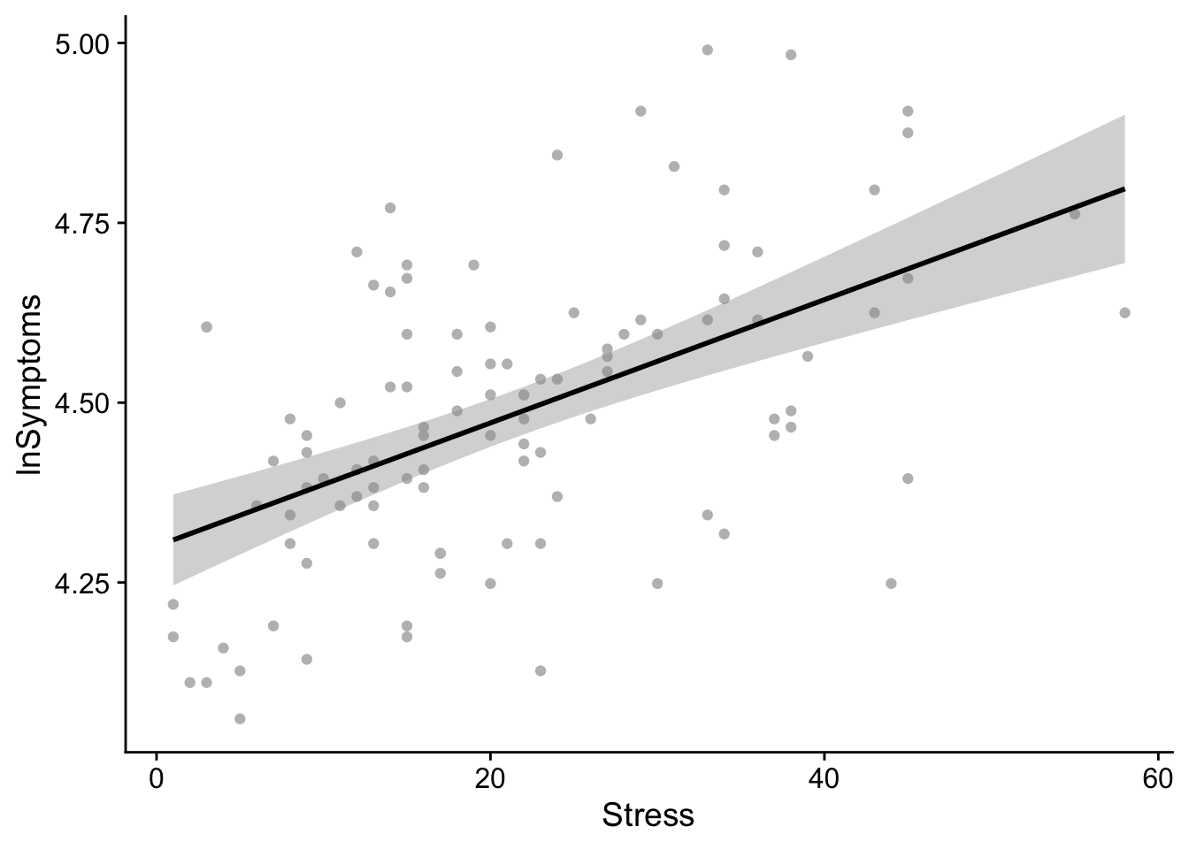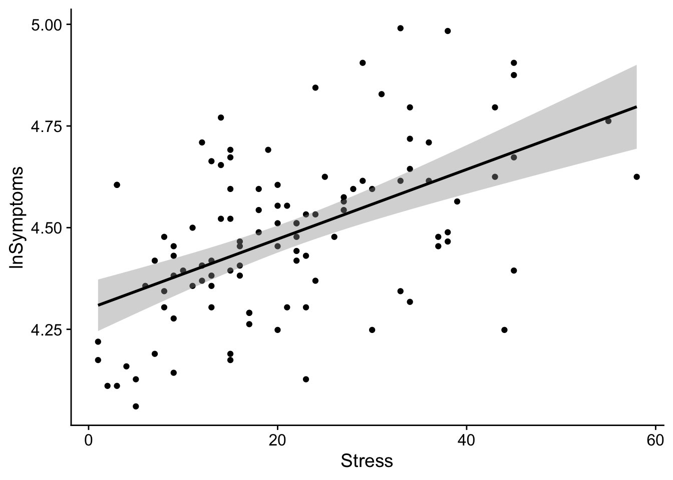 <- ggplot(stress_data, aes(x = Stress, y = lnSymptoms)) +