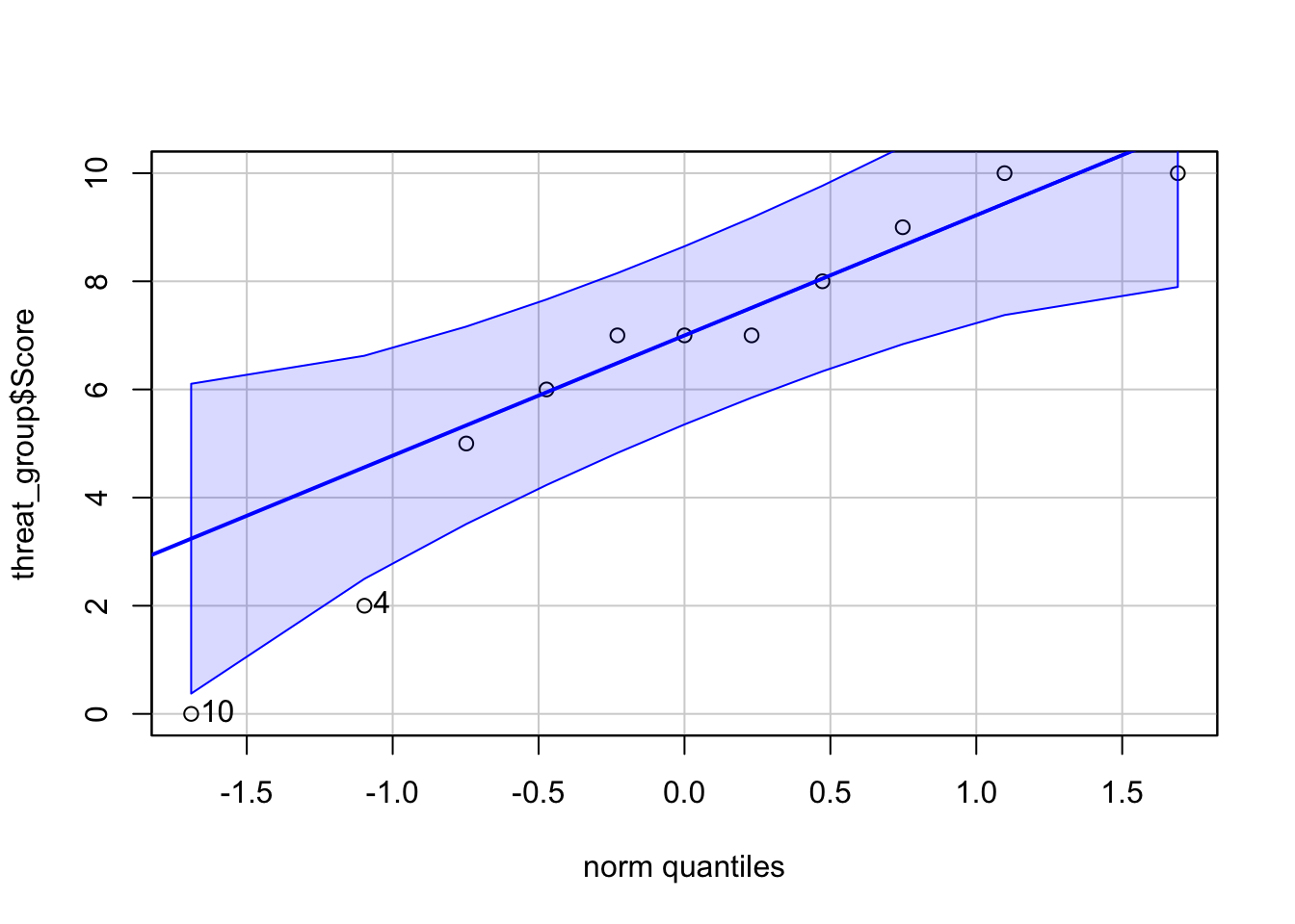 alternative hypothesis: true difference in means between group Control and group Threat is not equal to 0