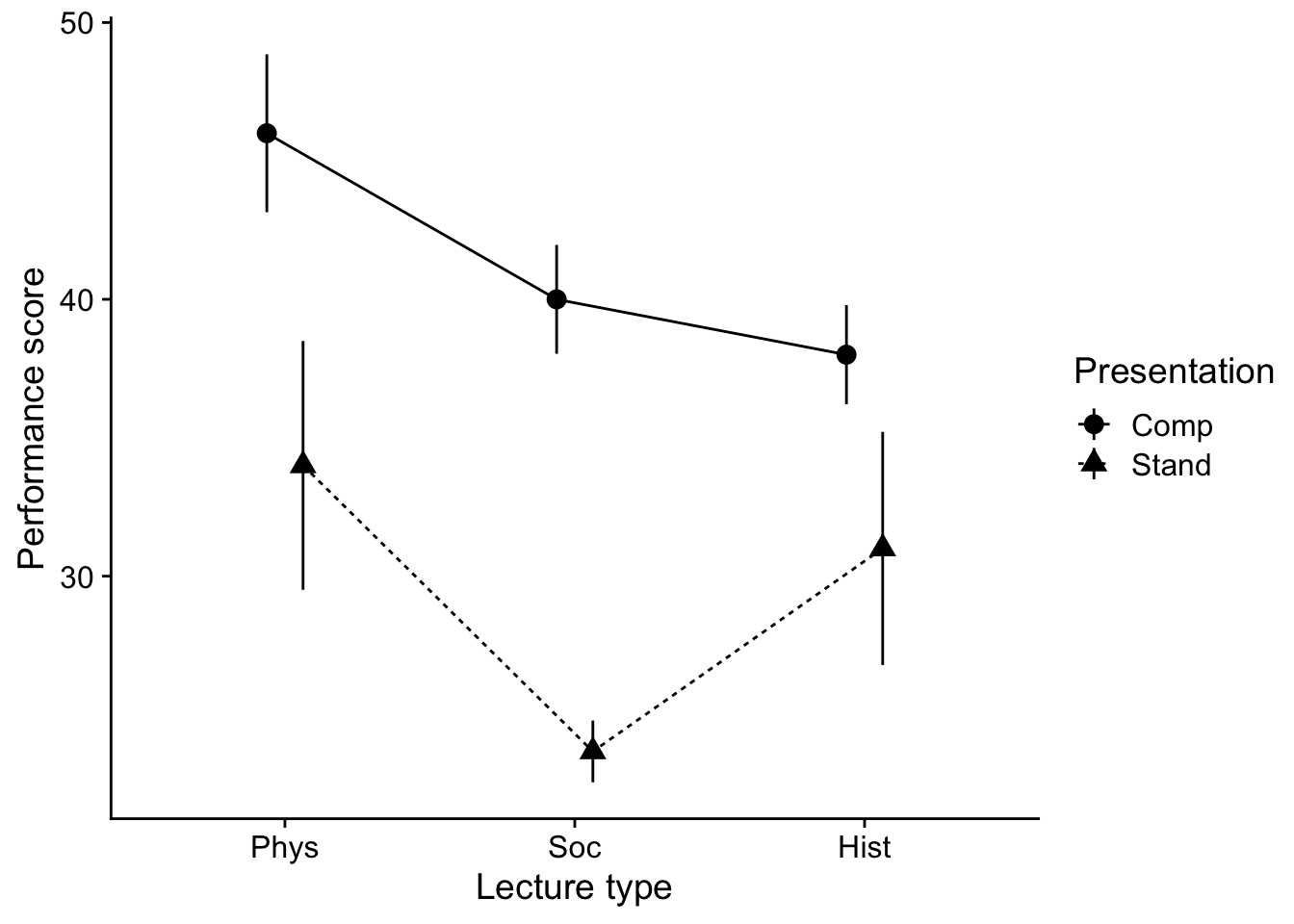 line_p stat_summary(geom = "line", fun = "mean", position=position_dodge(.25), aes(linetype=Presentation))
