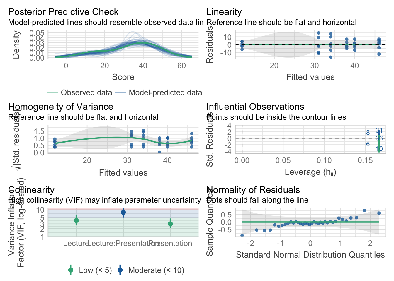 - Main effect for Lecture: this main effect is not as clear. Overall, people may have performed worst on the
