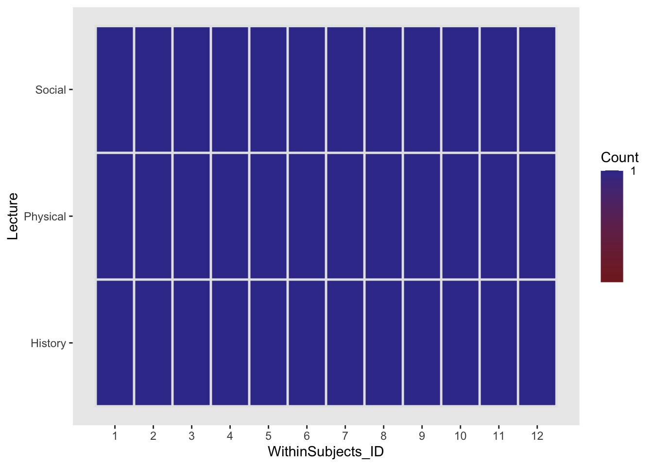 which imagines 12 participants each going through all 3 Lecture types and BetweenSubjects